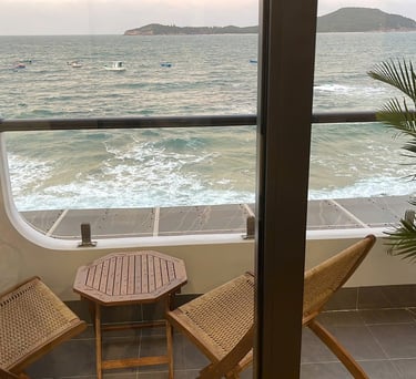 Với diện tích 20.5 m2, có ban công hướng biển, 1 giường 1m8 với sức chứa 2 người lớn + 1 trẻ em.