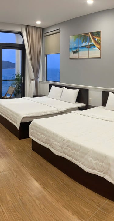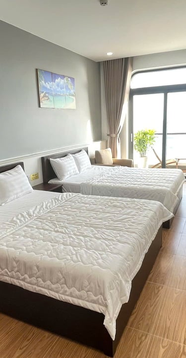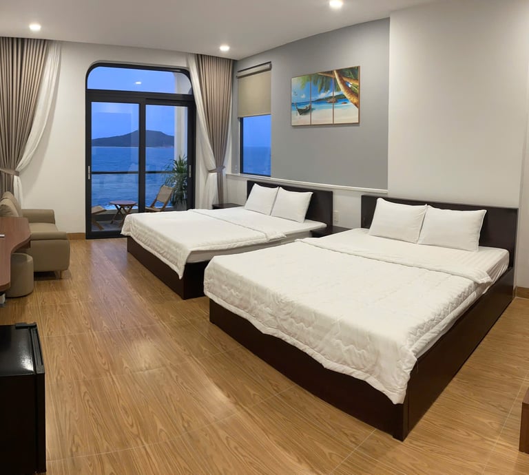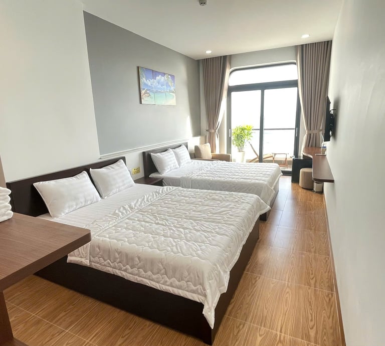 Với diện tích 24 m2, có ban công hướng biển, 2 giường 1m8 với sức chứa 4 người lớn + 2 trẻ em.