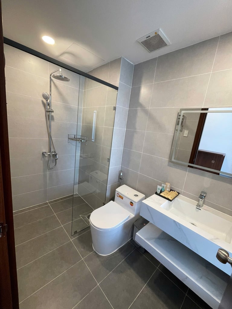 Các tiện ích trong phòng: Tivi 55", tủ lạnh mini, máy sấy, máy nước nóng, thang máy
